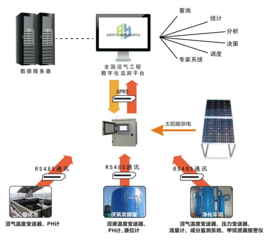 1、大中型沼氣工程實(shí)時(shí)運行參數如溫度、壓力、PH 以及沼氣流量、成分、溫度數據獲取,是大中型沼氣工程驗收、監督、運行的可靠數據來(lái)源