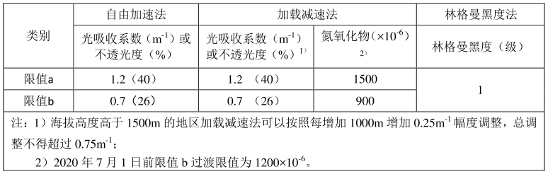 表二、GB 36886-2018排氣煙度限值要求